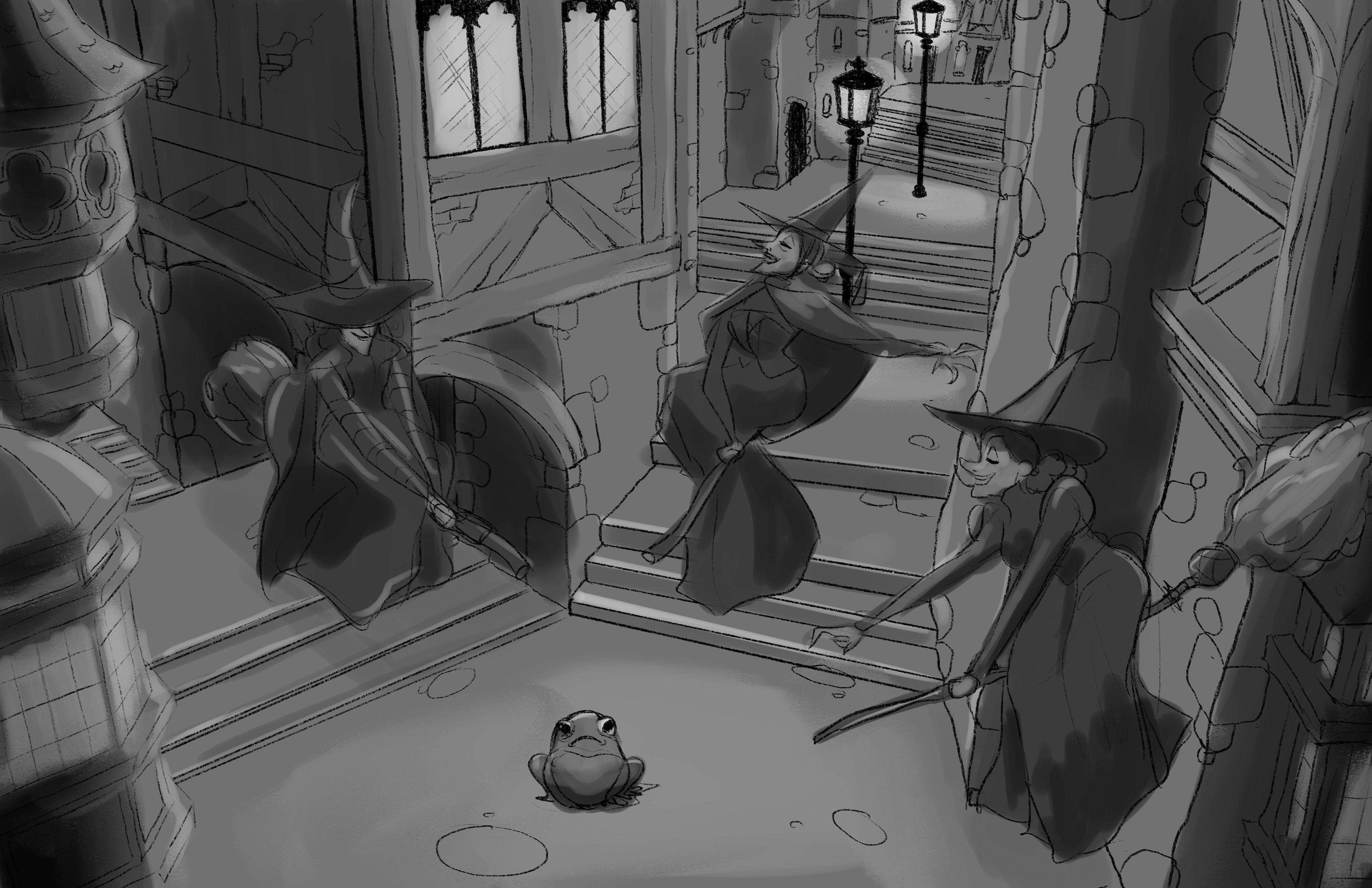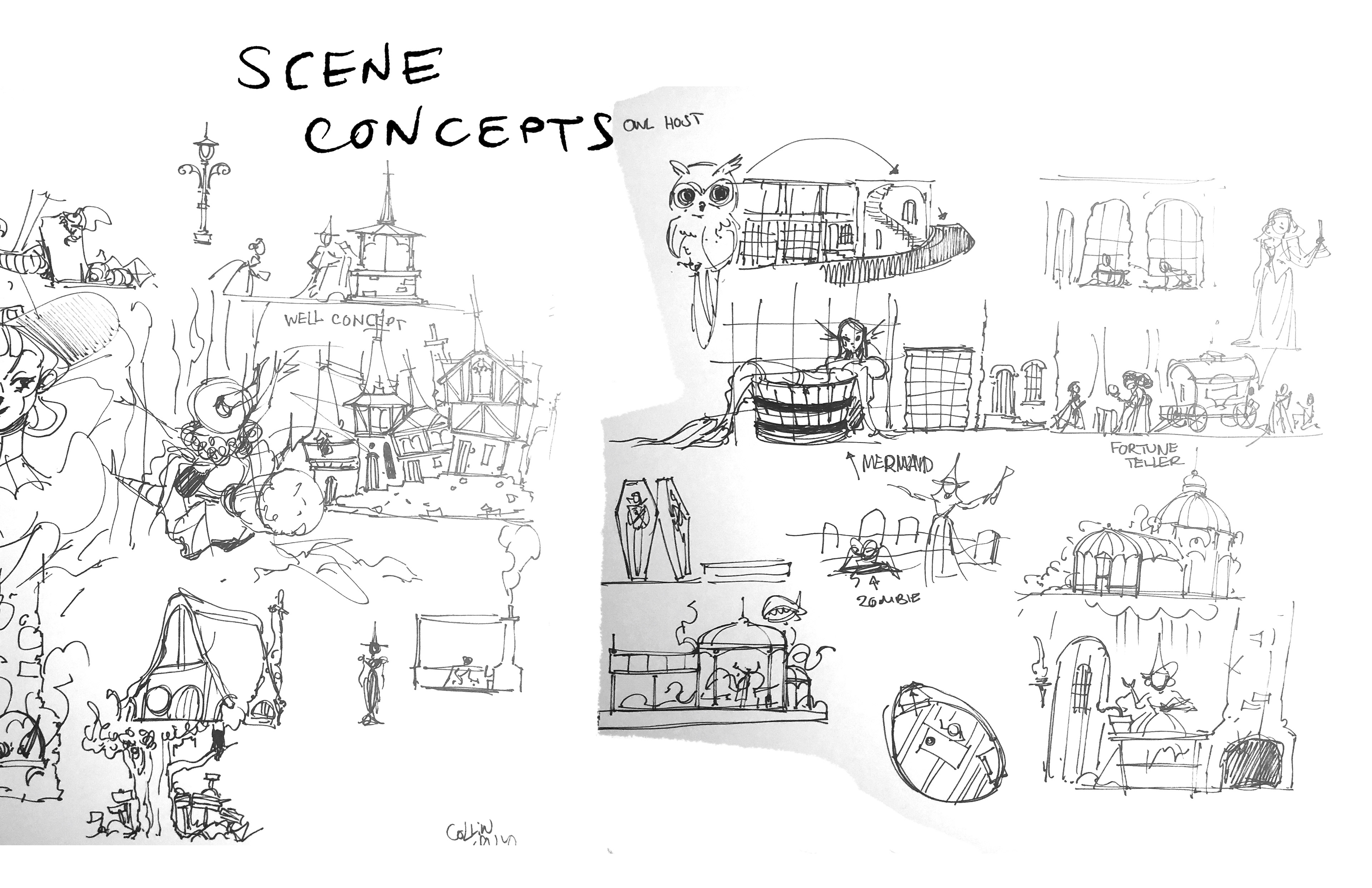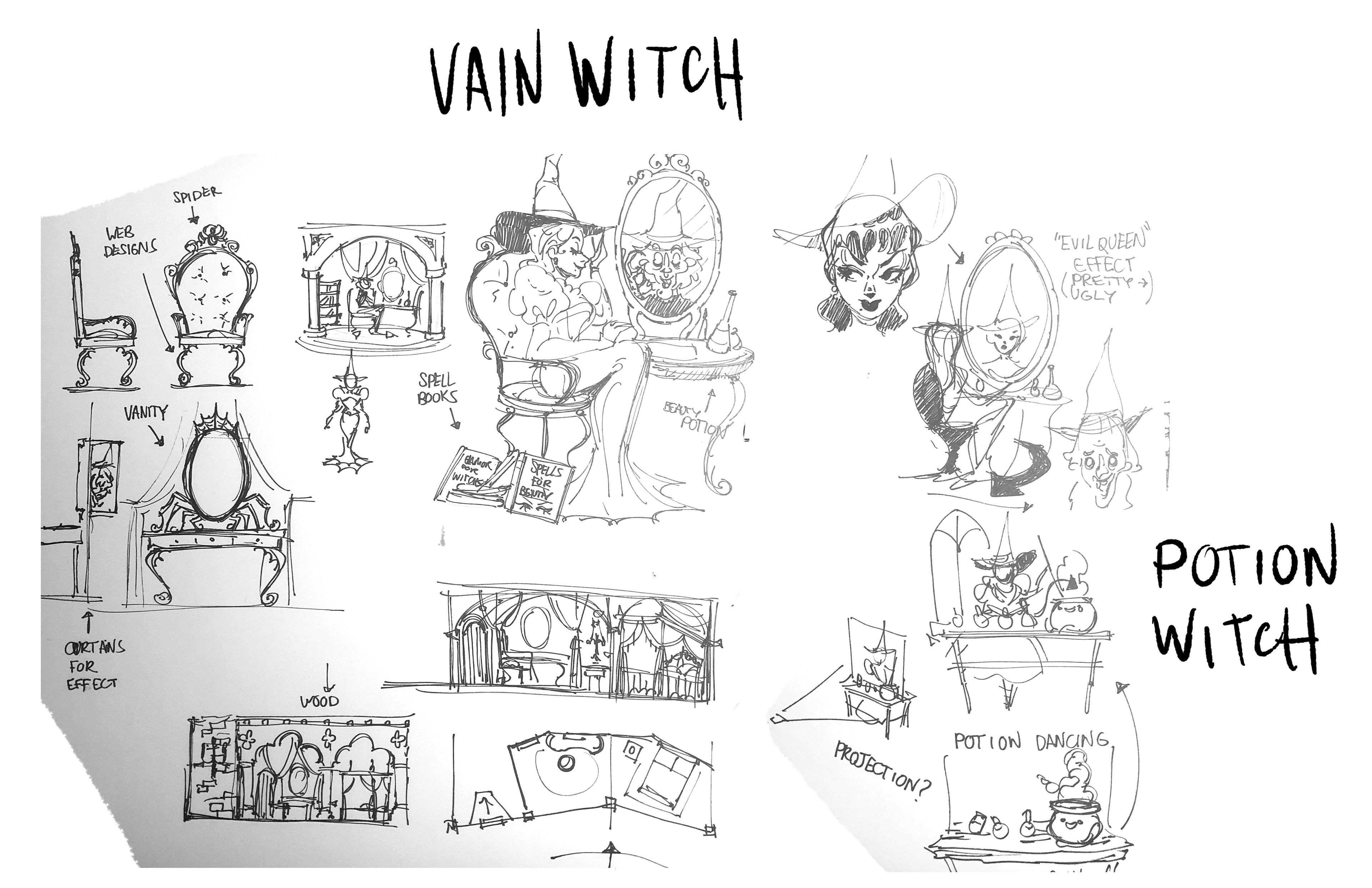 Flight of the Witches is a suspended family dark ride inspired by rides like Haunted Mansion and Pirates of the Caribbean. The goal of this project is to conjure up an original world and characters similar to the previously mentioned attractions, all based on Witches. I chose Witches because I believe similarly to Pirates and Ghosts we have preconceived ideas as to what witches are and what situations we might find them in.