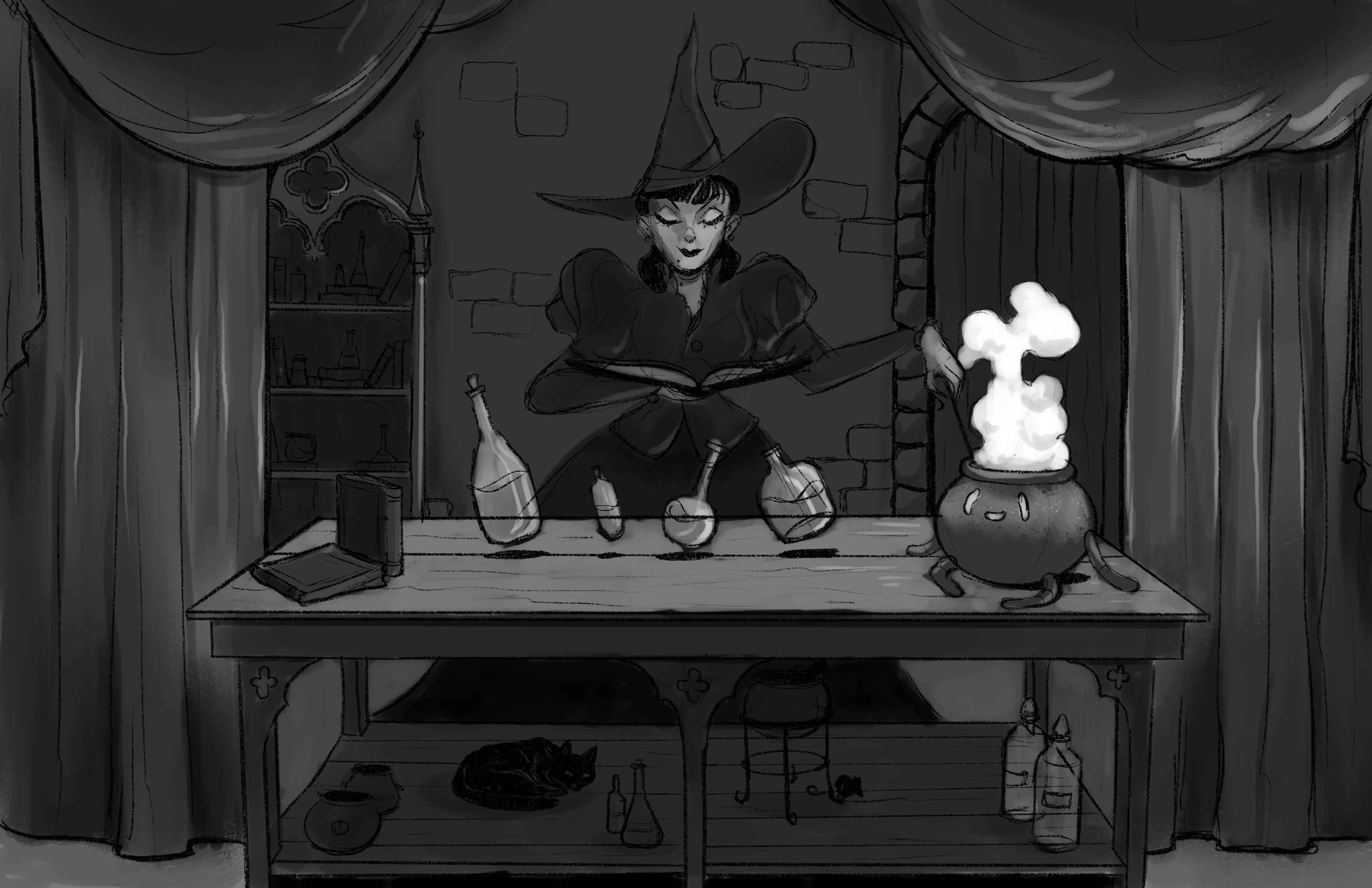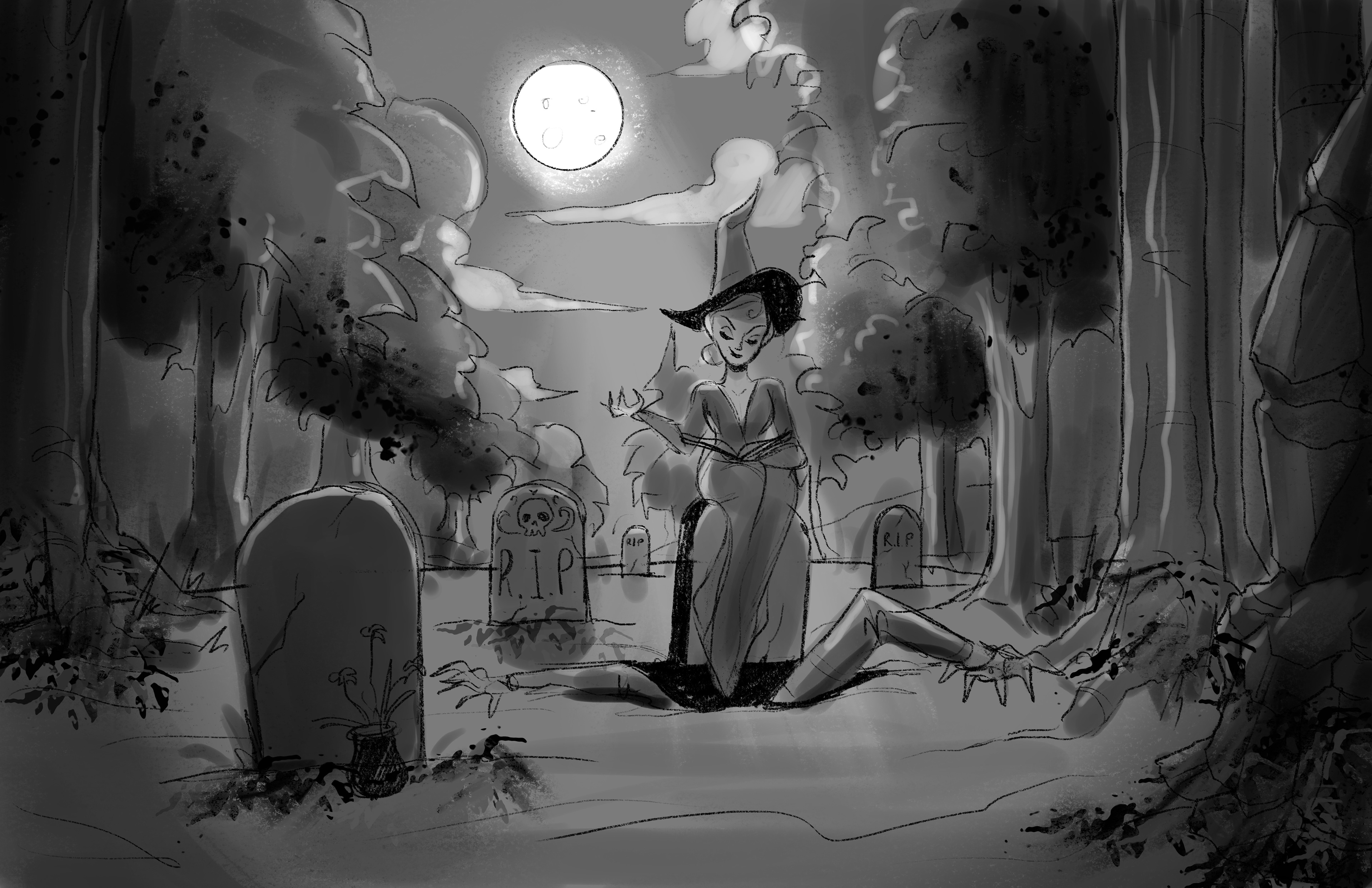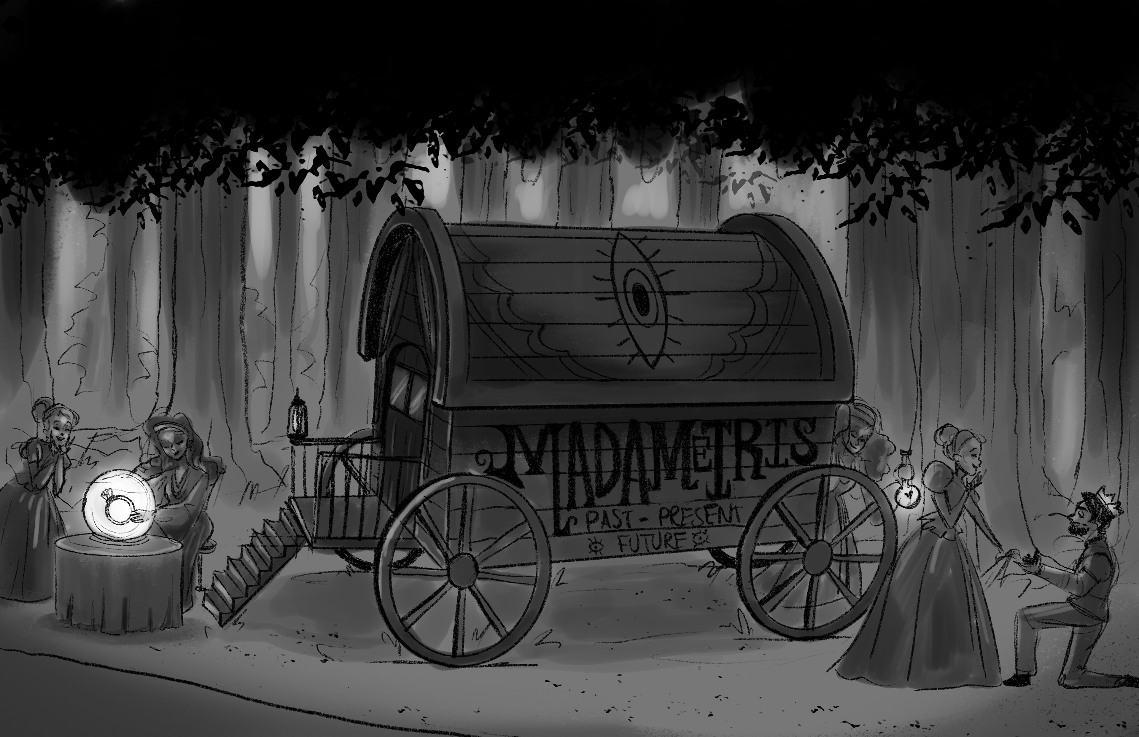 Flight of the Witches is a suspended family dark ride inspired by rides like Haunted Mansion and Pirates of the Caribbean. The goal of this project is to conjure up an original world and characters similar to the previously mentioned attractions, all based on Witches. I chose Witches because I believe similarly to Pirates and Ghosts we have preconceived ideas as to what witches are and what situations we might find them in.