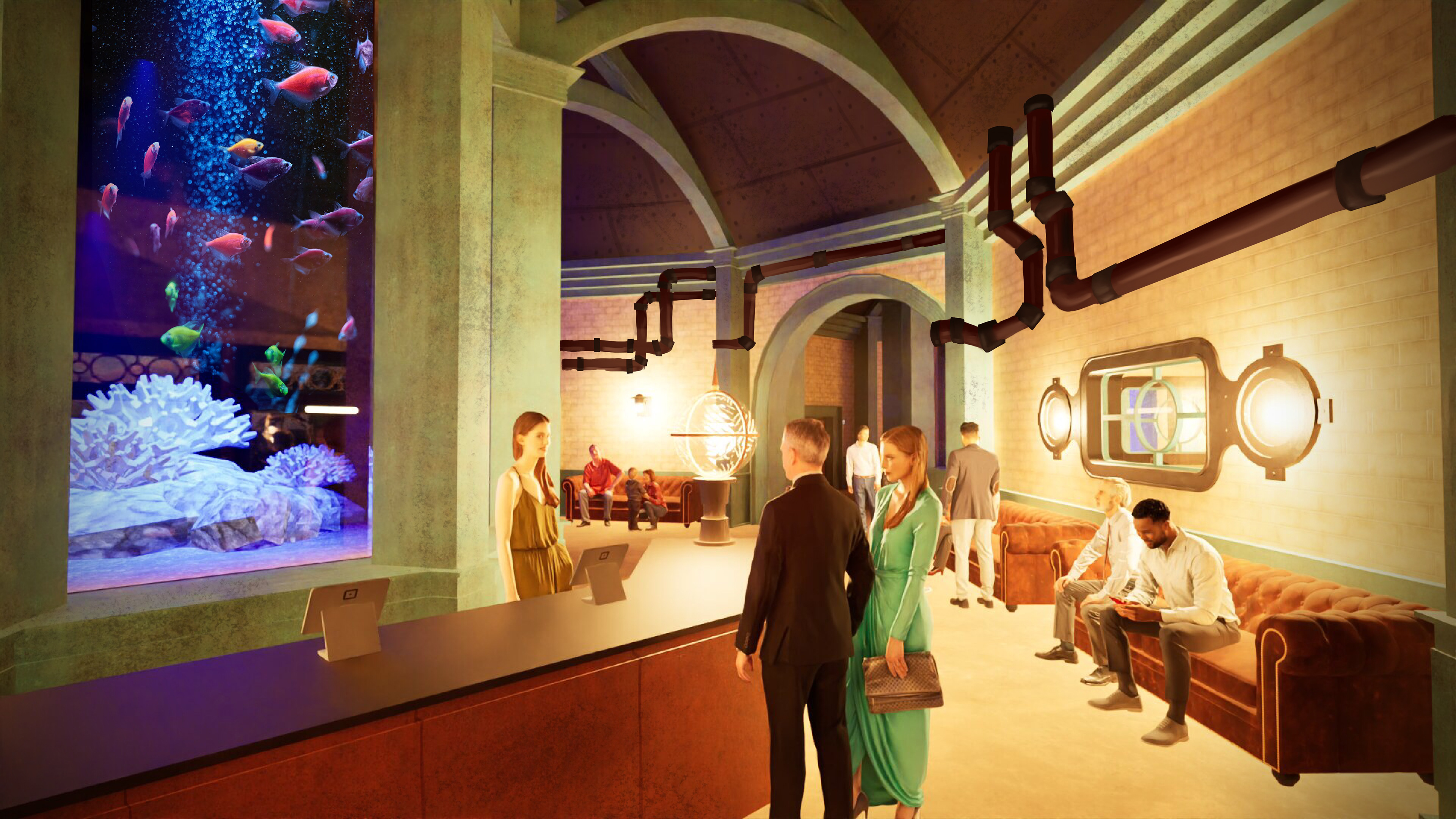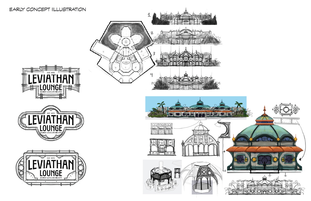 Travel 20,000 leagues below to the Leviathan Lounge, a Jules Verne-inspired dining establishment where you can dine underwater and explore the collection of explorers that came before you.