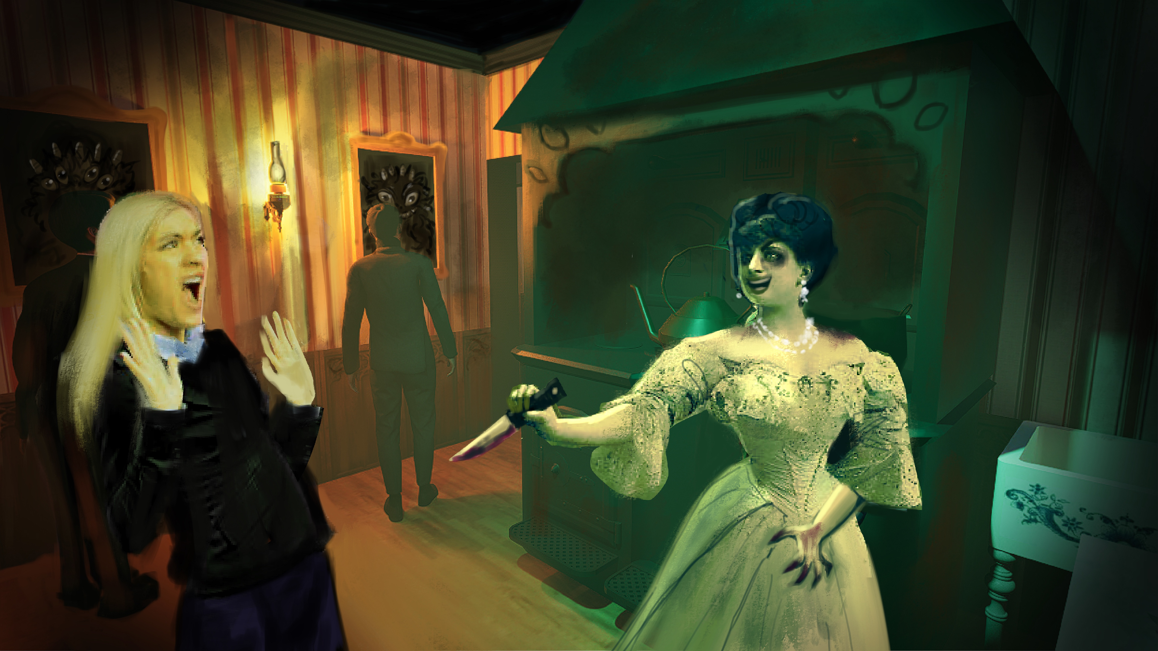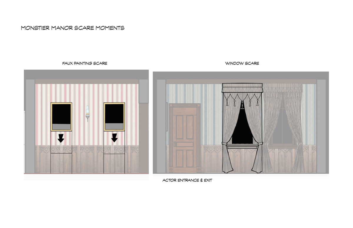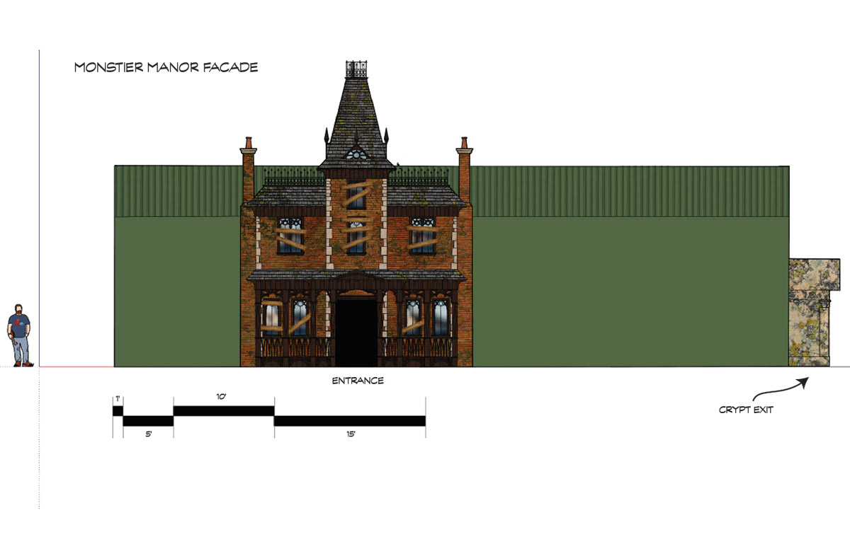 Monstier Manor is a haunted house attraction where you explore the story of the Monstier family. You explore the abandoned and cursed manor, where you are scared by the ghostly residents and the monsters that hide within the walls.