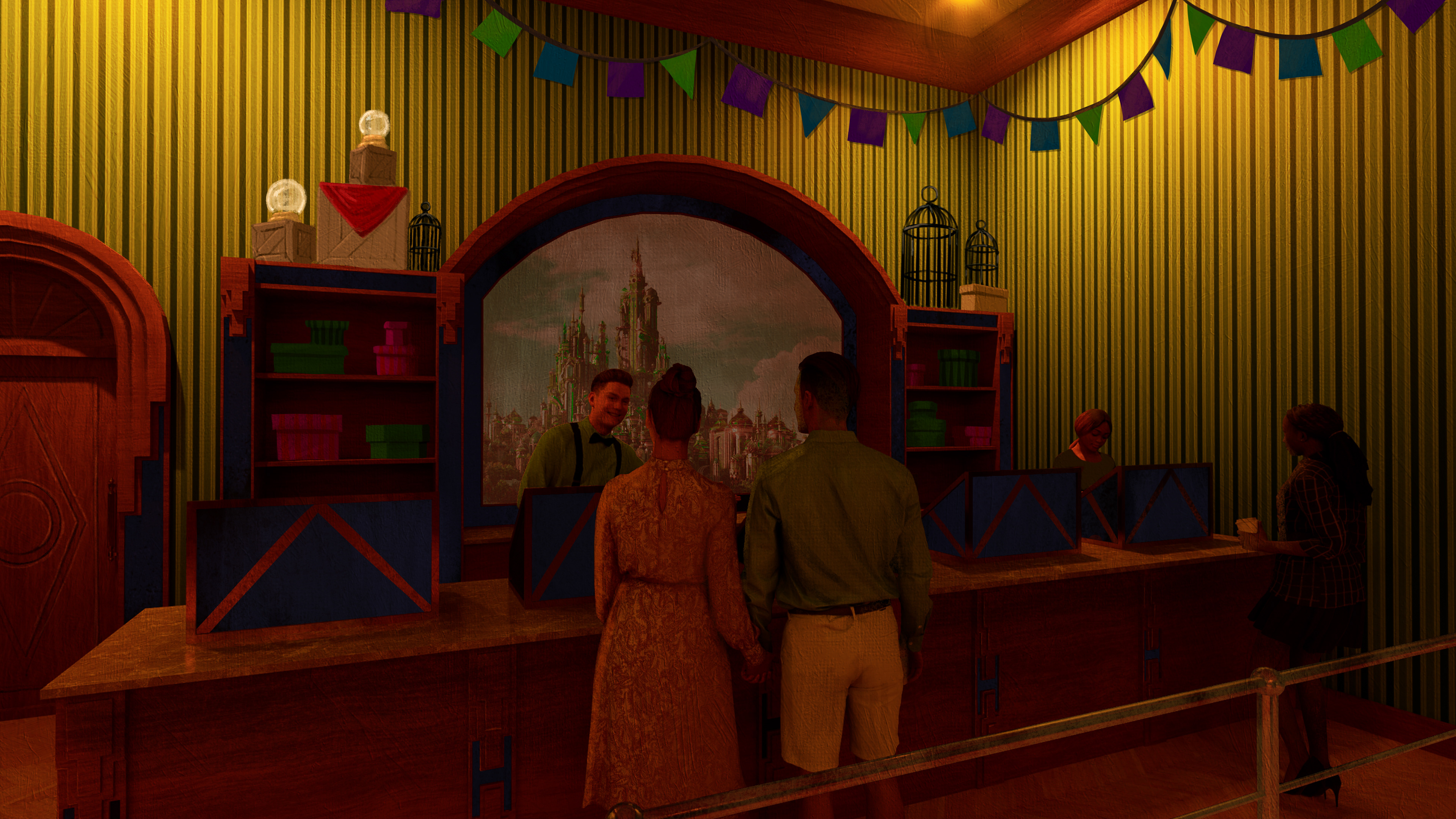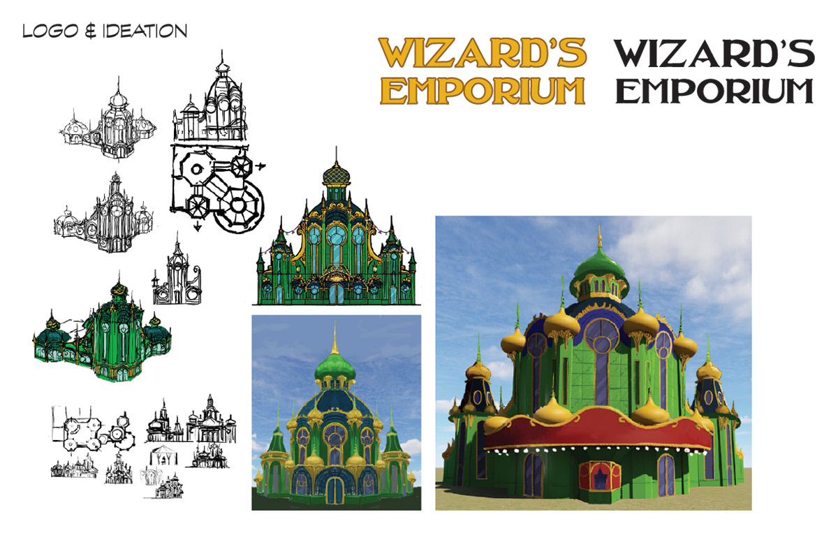 The Wizard's Emporium is a fan project for a Wicked-themed retail location within the Emerald City. The location is briefly mentioned in Wicked: For Good, and I wanted to expand upon the concept.